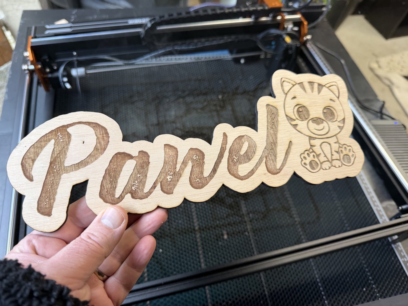 Un ensemble de prénom décopés sur du CP de 10 mm a haute vitesse