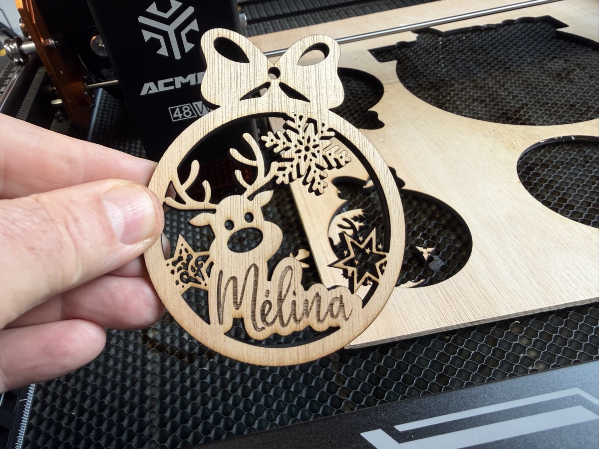 J’ai testé par le passé un produit concurrent, la Sculpfun S9 en 40 watts, qui avait un faisceau si large que des découpes de décoration de Noël précises lui étaient quasi impossibles.