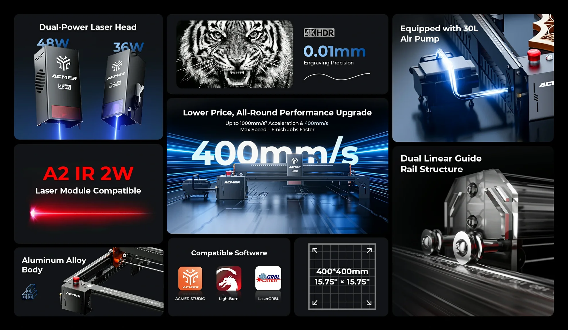 Test ACMER S2 PRO 48 Watts, Il y a toujours une place pour les graveuses laser cadre ouvert puissantes.