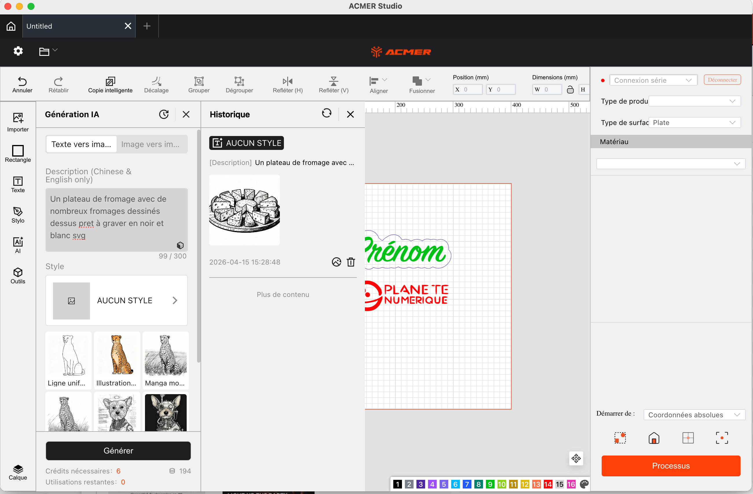 Bref, de quoi faire de belles compositions mélangeant gravure et découpe. Il lui manque des possibilités d’édition vectorielle.