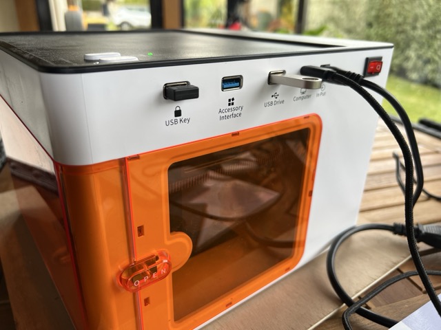 - Le premier accueille le dongle de sécurité, indispensable au fonctionnement de la machine.