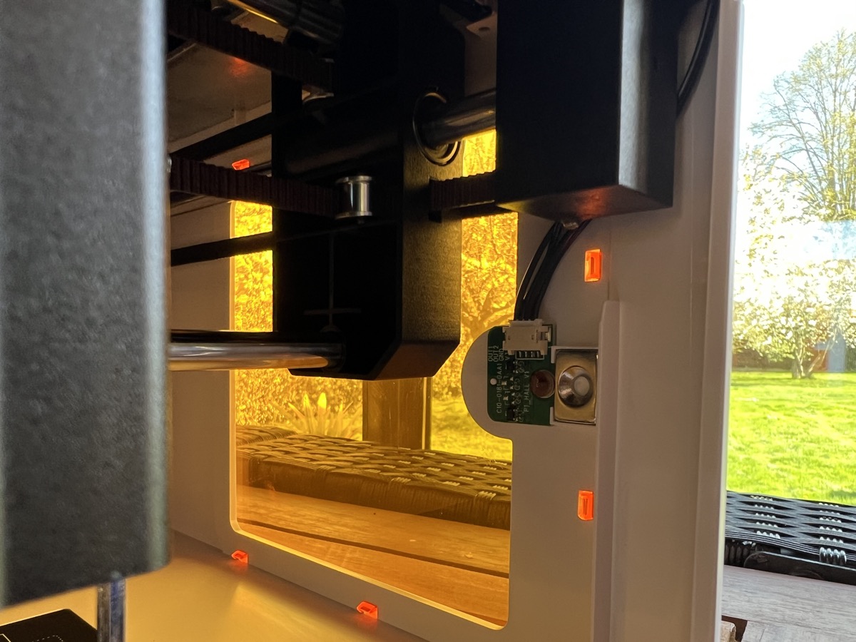 Les dispositifs de sécurité fonctionnent bien : la gravure se met immédiatement en pause à l’ouverture de la porte et reprend à sa fermeture.