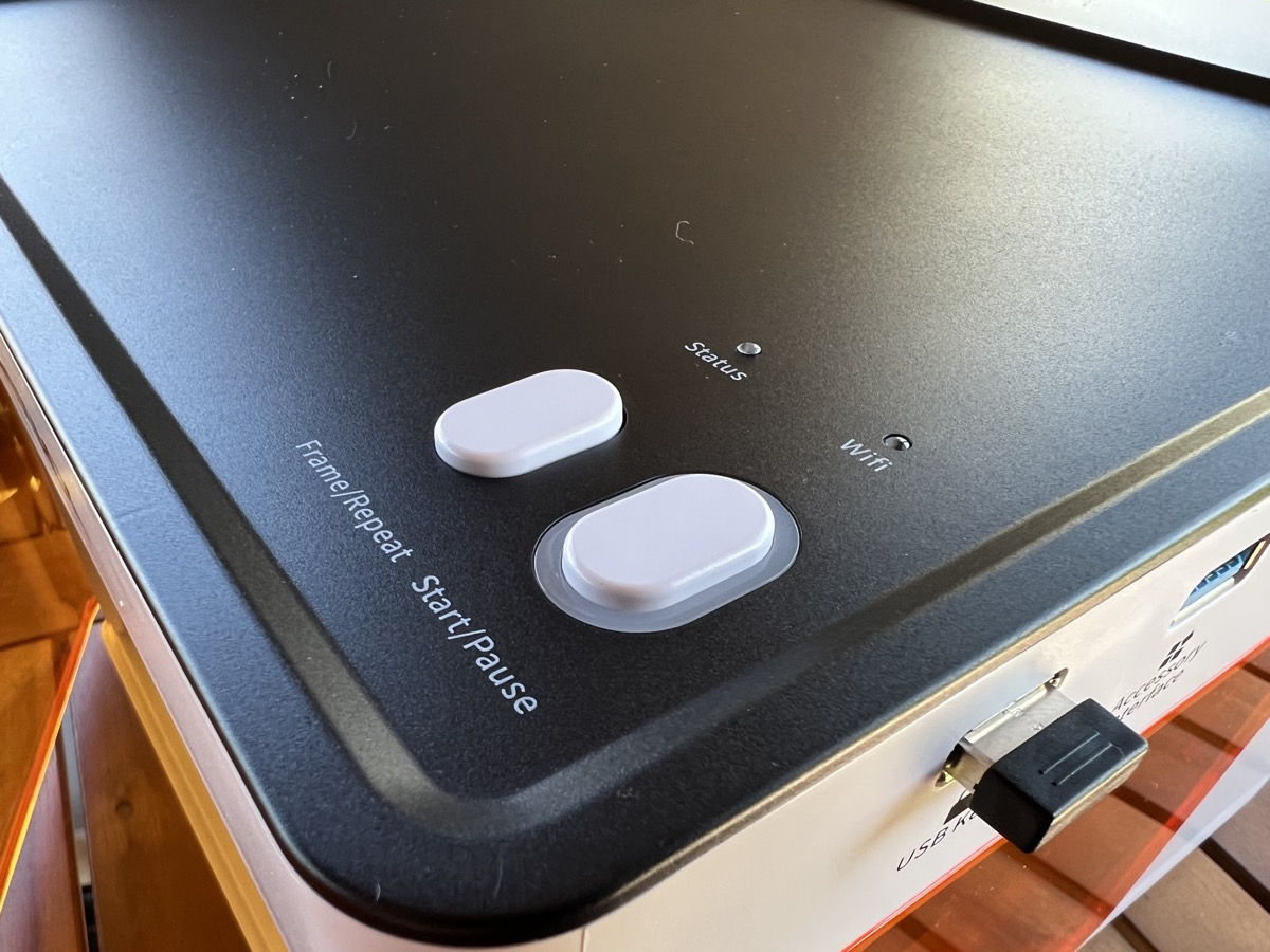 - L’autre à lancer, mettre en pause la gravure, ou encore à activer le jumelage Wi-Fi.