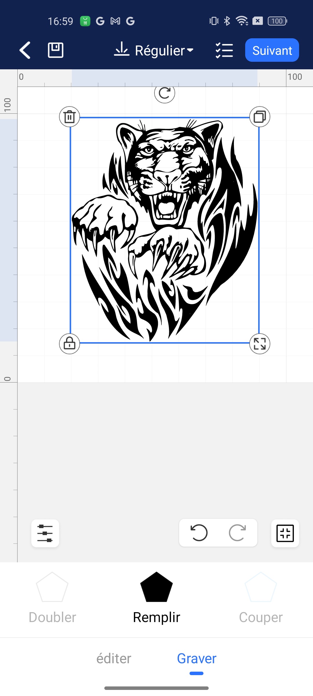 L’application offre tout le nécessaire pour créer et lancer une gravure ou une découpe directement depuis un smartphone. Vous pouvez importer des images ou photos, les positionner avec précision, appliquer des filtres, ajouter du texte ou des codes 2D. Il est ensuite possible de régler la puissance et la vitesse de gravure, avec une fonction de cadrage pour vérifier l’emplacement avant lancement. ELle permet aussi la mise à jour du firmware de la machine.