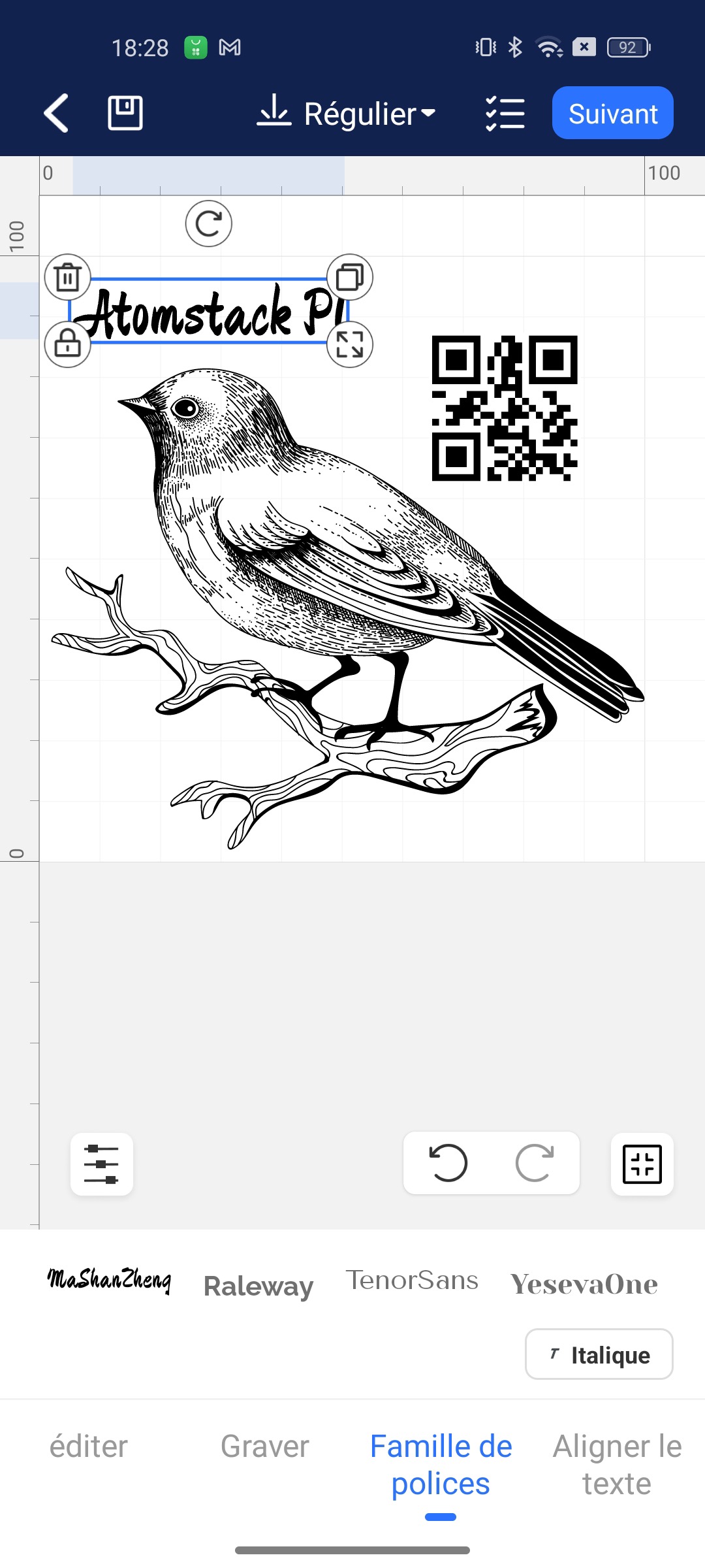 C’est ici qu’intervient l’atout majeur de l’offre Atomstack : le fabricant propose Atomstack Studio, un logiciel gratuit pour PC, permettant d’importer des images, créer des formes, saisir du texte et positionner les éléments avec précision.