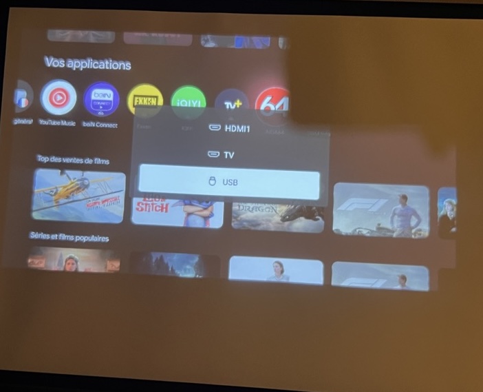 Cette dernière source USB ouvre un lecteur multimédia intégré directement au cœur du projecteur. Il n’est pas rattaché au système Android.