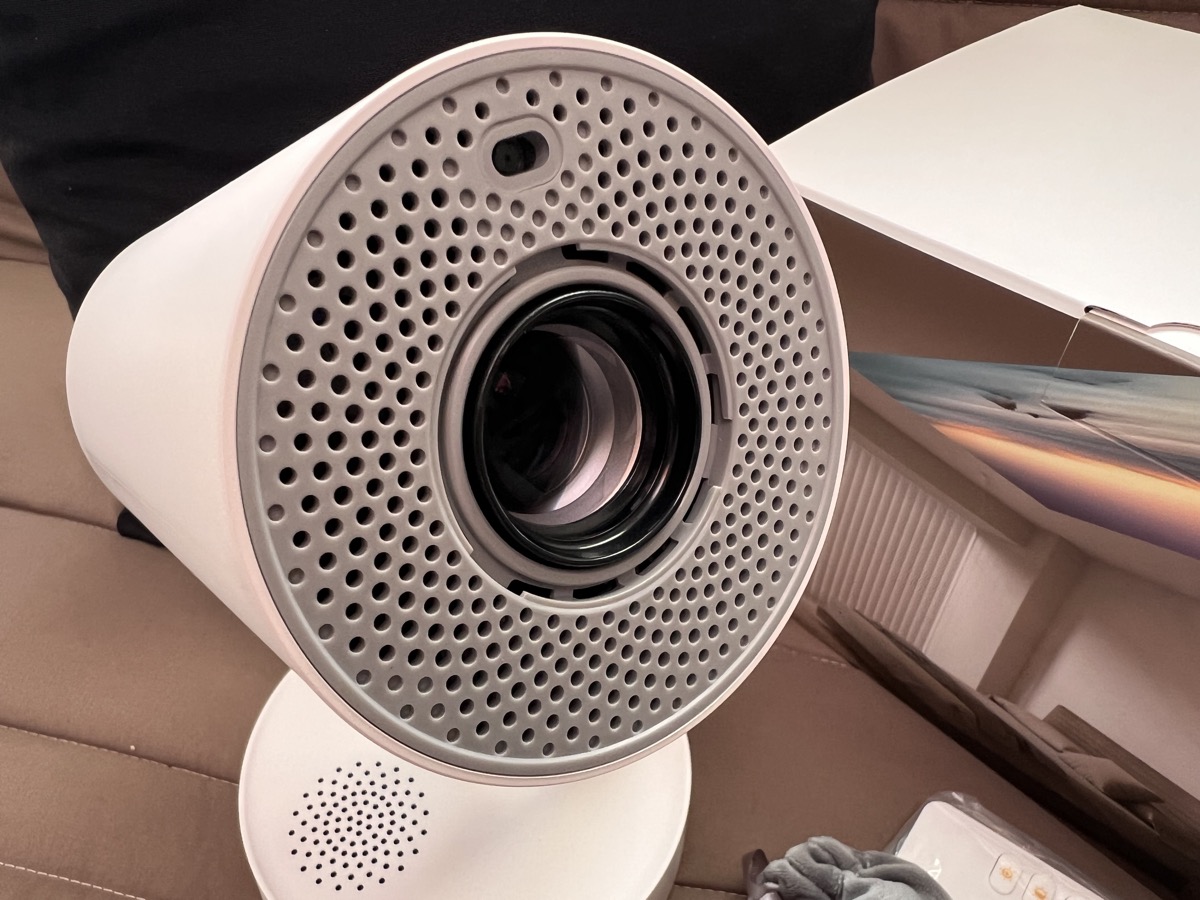 Le projecteur se compose d’un socle compact rond, d’un bras et du module projecteur vidéo. Il est, de fait, plus imposant que ce que laissent penser les photos, ce qui n’est pas un reproche, mais plutôt un constat.