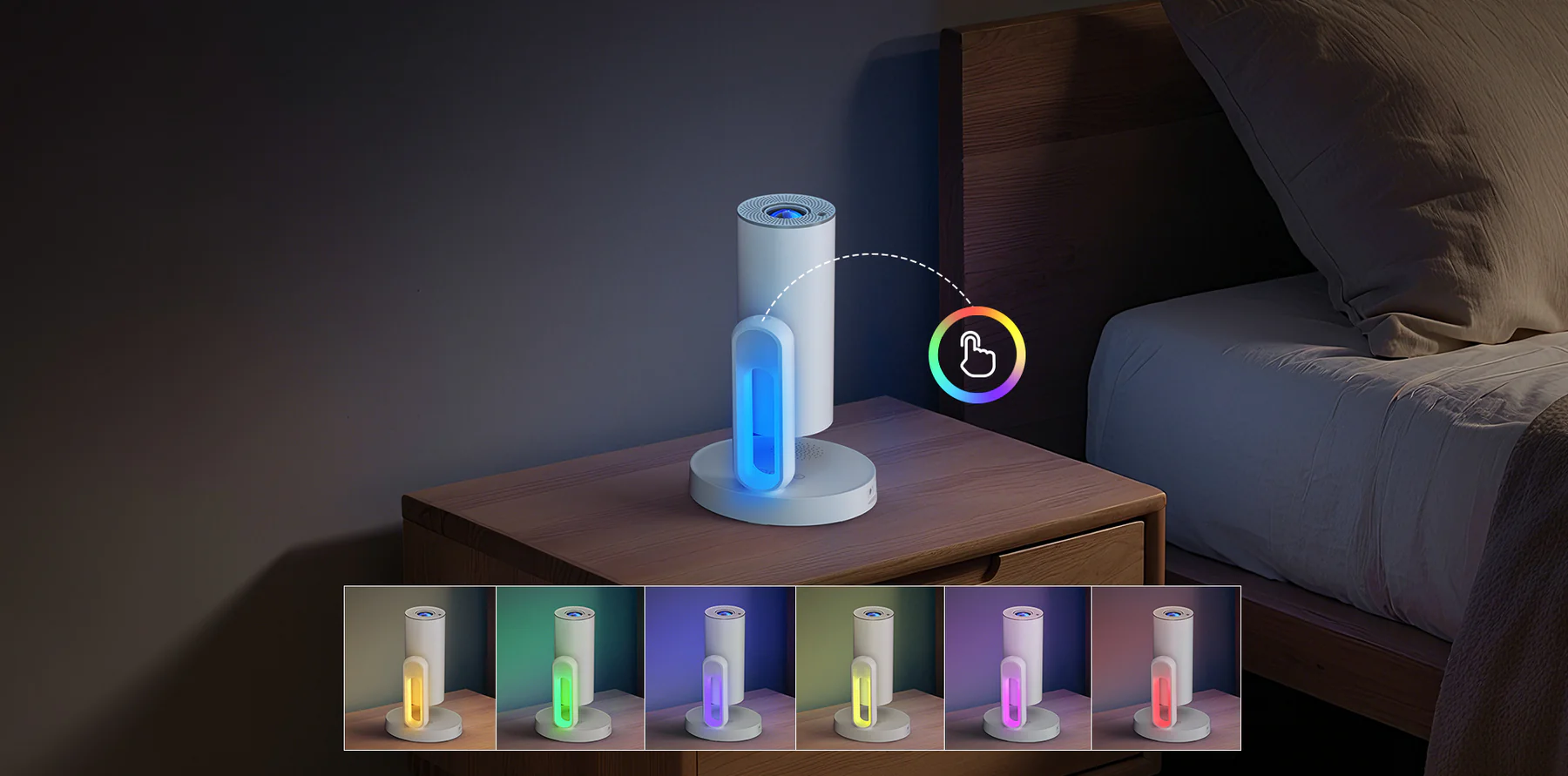 Il intègre un jeu de LED proposant sept couleurs. En appuyant sur un bouton tactile situé au-dessus du bras, il est possible de changer la teinte. Cette fonction permet de créer une ambiance lumineuse, de servir de lumière d’appoint apaisante ou encore de repérer des objets proches dans l’obscurité.