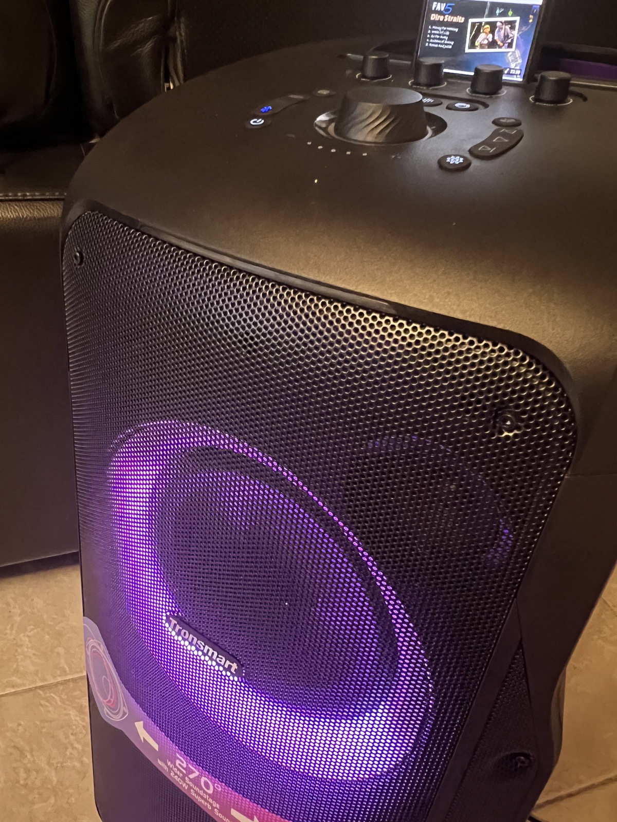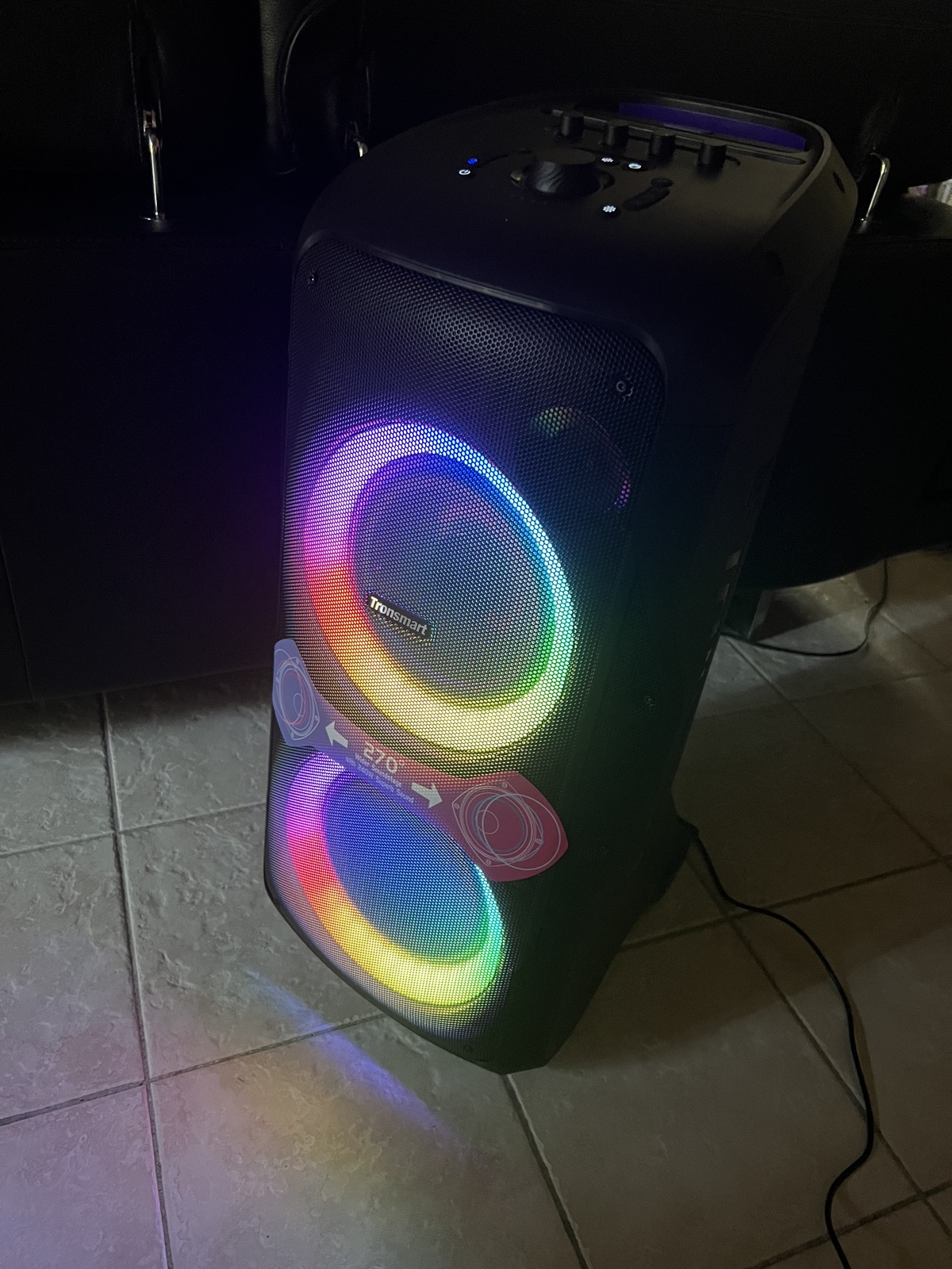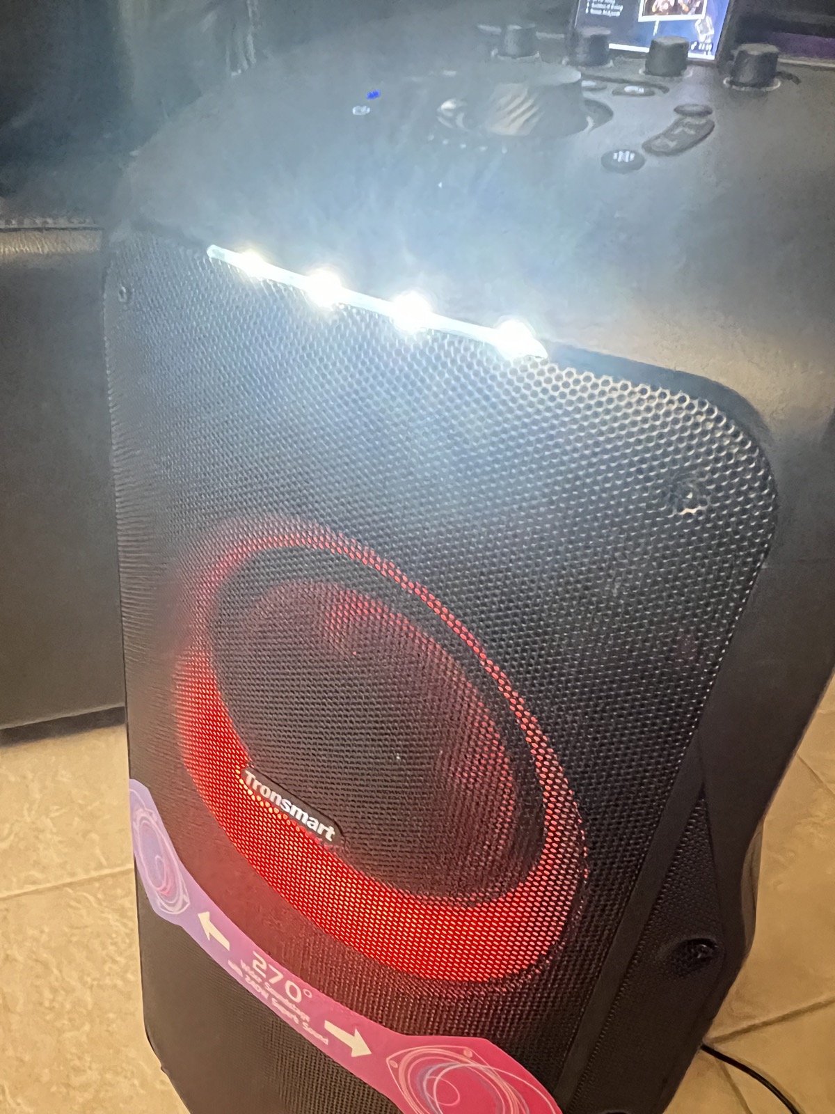 Pour parfaire l’ambiance dance floor, Tronsmart propose sur la Halo 300 un système de lumière en façade. Il n’a pas pour prétention de remplacer un jeu de lumière mais il contribue à créer une ambiance de fête.