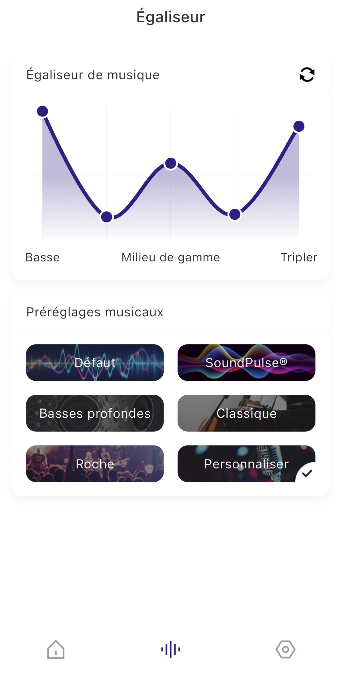 Disponible sur iOS et Android, elle permet d’aller plus loin dans la configuration audio avec sélection de profils sonores (prédéfinis) et personnalisable via un égaliseur cinq bandes.