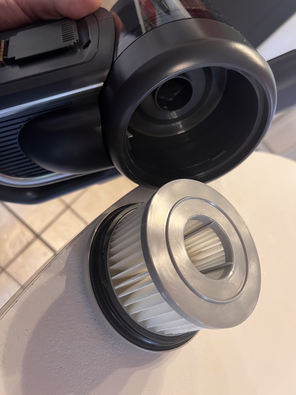 L’aspirateur est équipé d’un filtre HEPA lavable qui évite de renvoyer dans l’air les allergènes et les particules fines. Il se retire très simplement pour un entretien régulier.
