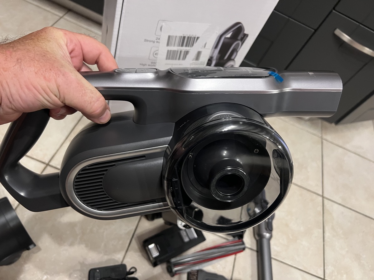 Le bloc de l’aspirateur conserve la même disposition que le JV85 Pro avec un système cyclonique positionné à l’horizontal. Les couleurs sont sobres et le design est moderne. Les plastiques sont bien assemblés et qualitatifs.