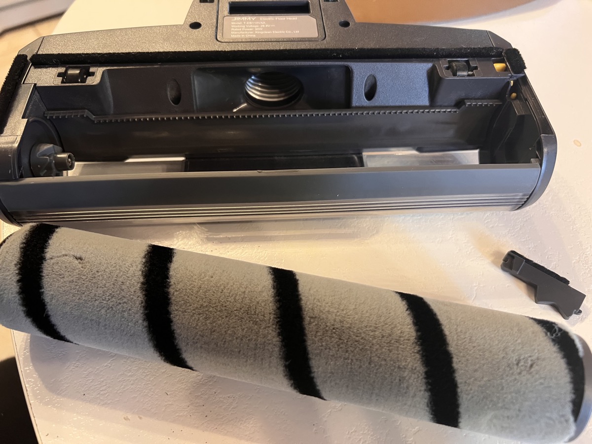 J’ai utilisé la brosse douce montée en standard adaptée pour les sols durs. Si votre logement est composé principalement de tapis ou de moquettes, vous pouvez changer le rouleau standard pour celui pour tapis.