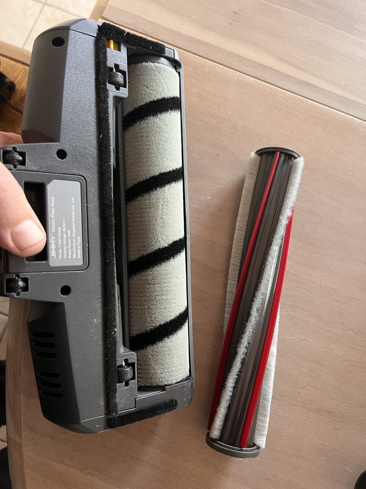 La brosse se démonte exactement comme celle du JV85 Pro sans outils ni besoin de forcer.