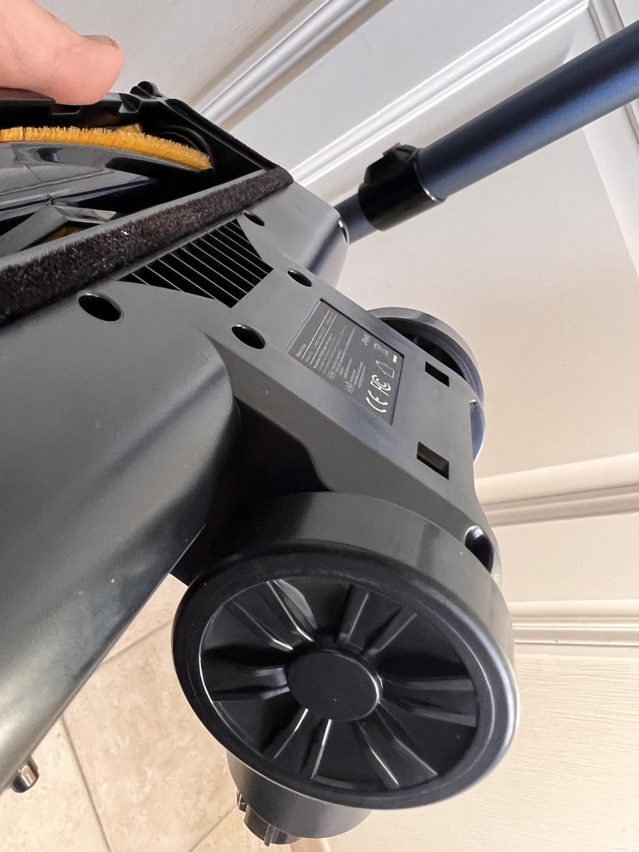 Elle est équipée de roues larges à l’arrière et d’un rouleau double matière anti-emmêlement, extractible pour un entretien facile.