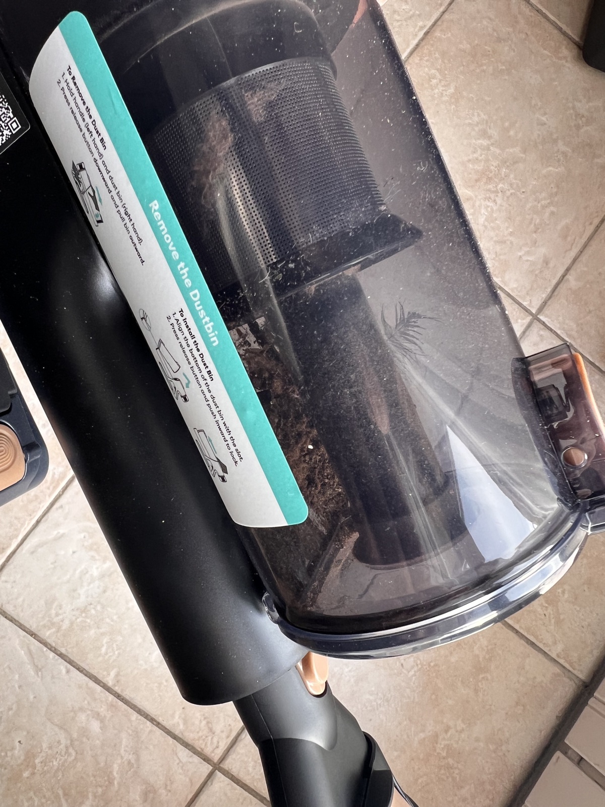 Le mode tapis augmente l’aspiration de manière audible et sensible, bien que en deçà des modes Boosts de haut de gamme comme Dyson ou Dreame . L’autonomie tombe alors à environ 25 minutes, ce qui est honnête.
