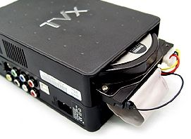 Parlons du disque dur justement : le Tvix qui nous est livré est équipé d’un disque dur IDE standard de 3,5 pouces et de 80 Go. Cette capacité s’avèrera suffisante pour une vidéothèque bien fournie. Les plus exigeants pourront acheter un modèle de 160 Go.