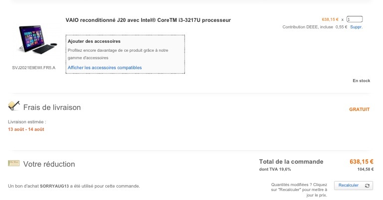 Ordinateur tablette Géante Sony Tab 20 à 638€15 livrée