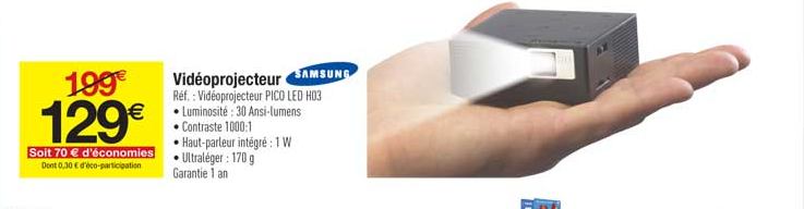 Pico Projecteur Samsung PICO LED SP-H03 avec batterie et lecteur vidéo à 129€ !
