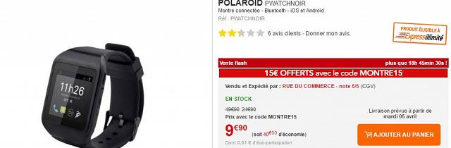 Les Smartwatch Polaroid Pwatch sont actuellement bradées à 9€90 chez Rue Du Commerce avec le code réduction MONTRE15.
