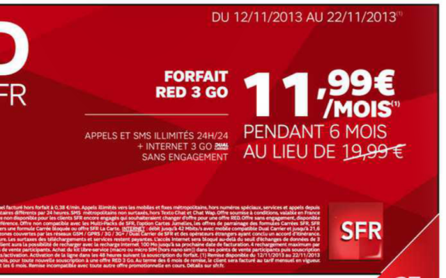 [ Forfait SFR RED Voix SMS MMS Illimité et 3GO de data 11€90 sans engagement