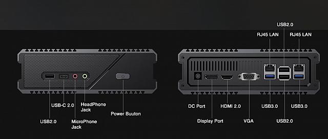 La connectique est assez complète pour u PC qui est de petite taille (18.8 x 17.8 x 6.1 cm).