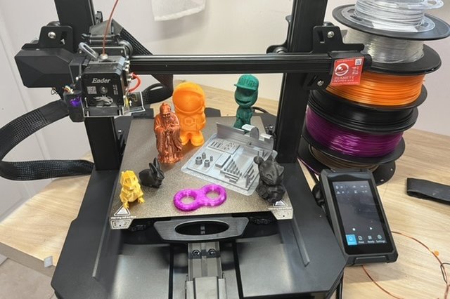 Après un nivellement automatique sans besoin d’ajustement manuel, j’ai réalisé une première série de tests avec du PLA avec les modèles fournis. Creality propose en effet, quelques GCODE basiques sur la carte pour se lancer.