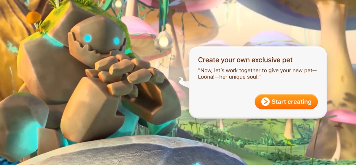 Ce rituel ludique permet de choisir le caractère de votre Loona (curieux ou calme).