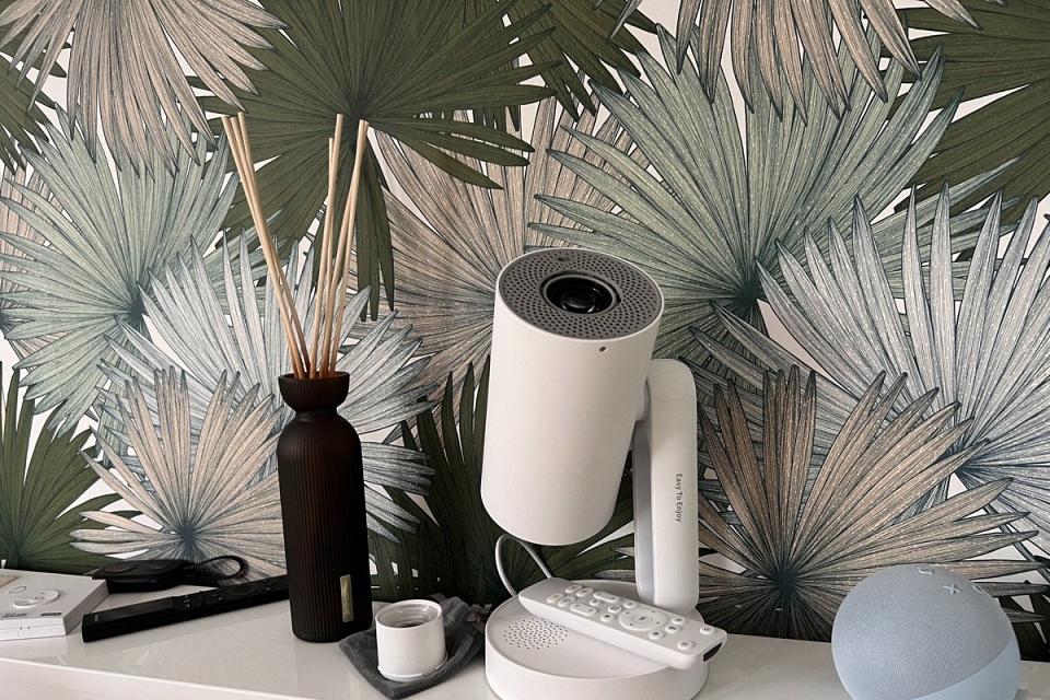 Le projecteur se compose d’un socle compact rond, d’un bras et du module projecteur vidéo. Il est, de fait, plus imposant que ce que laissent penser les photos, ce qui n’est pas un reproche, mais plutôt un constat.