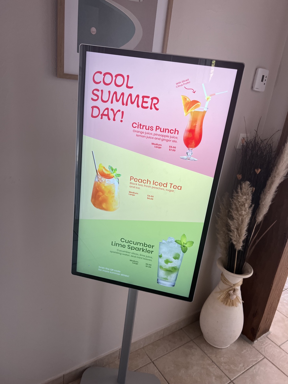 Utilisable en mode vertical ou horizontal sur un support mobile avec une batterie, ce qui semble un écran 32 pouces 4K est bien plus que cela. Avec son système Android intégré avec sa large bibliothèque d’application et surtout sa dalle tactile, Il est plus comparable à énorme tablette tactile sans devoir se réduire à cette définition.