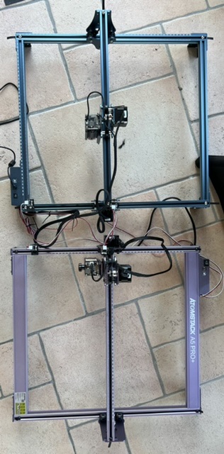 En résumé, il s’agit de quatre profilés aluminium à connecter ensemble avec un portique qui soutient la tête Laser. .