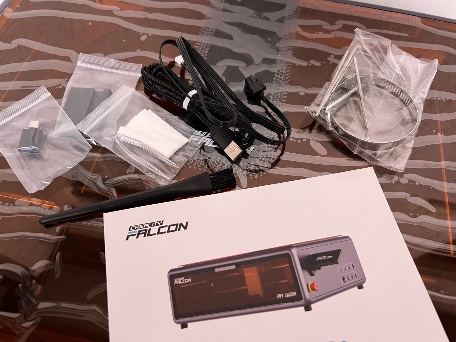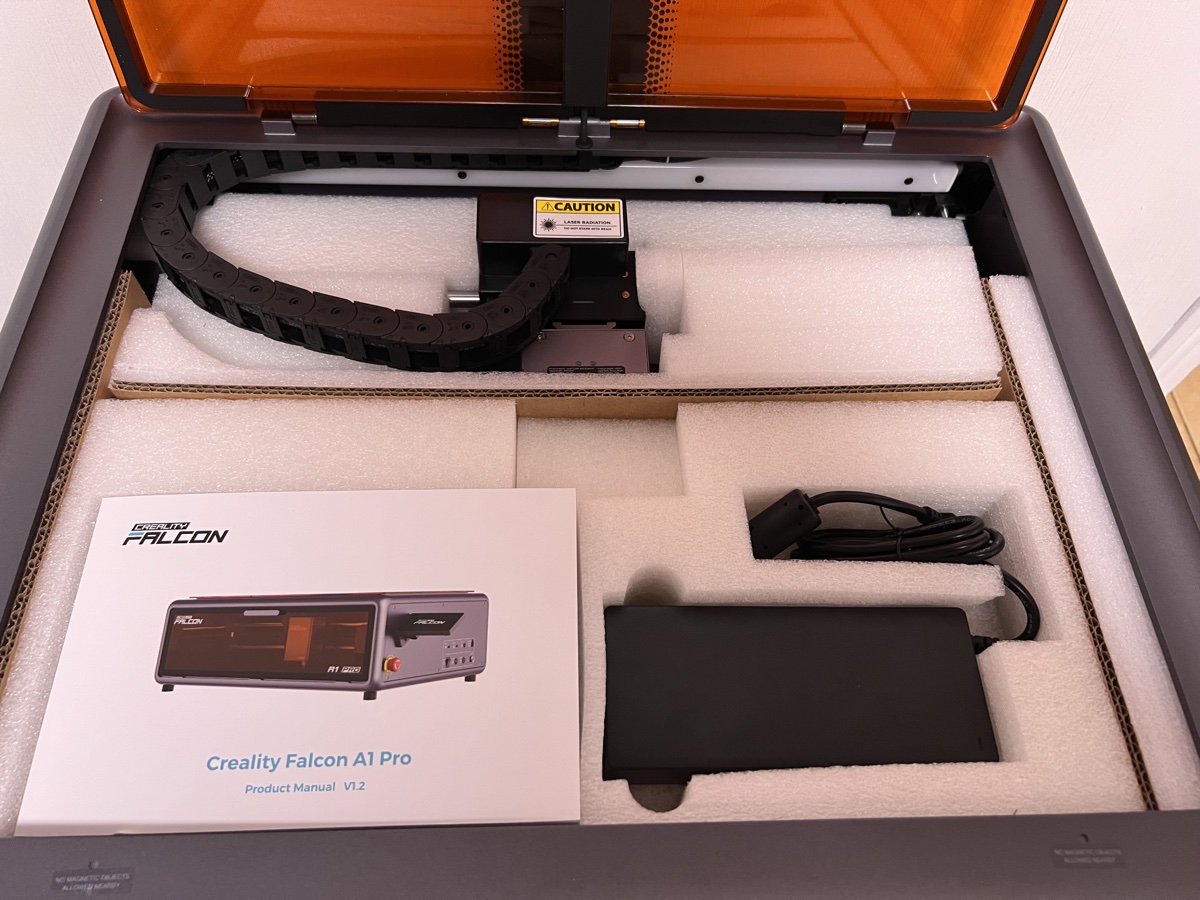La gamme Creality Falcon A1 comporte deux modèles, la A1 et la A1 PRO, ici en test. La A1 pro dispose d’une tête de gravure de 20 watts contre 10 watts pour la A1. Cela lui offre une bonne capacité de découpe du bois et aussi des possibilités de gravure plus rapide. La A1 Pro est également équipée d’un autofocus et d’un écran tactile pour un pilotage sans ordinateur. La Creality A1 est donc un modèle pour débutant plutôt orienté sur la gravure. La A1 pro, permet un usage plus large avec une gravure plus rapide et aussi de la découpe de bois plus épais.