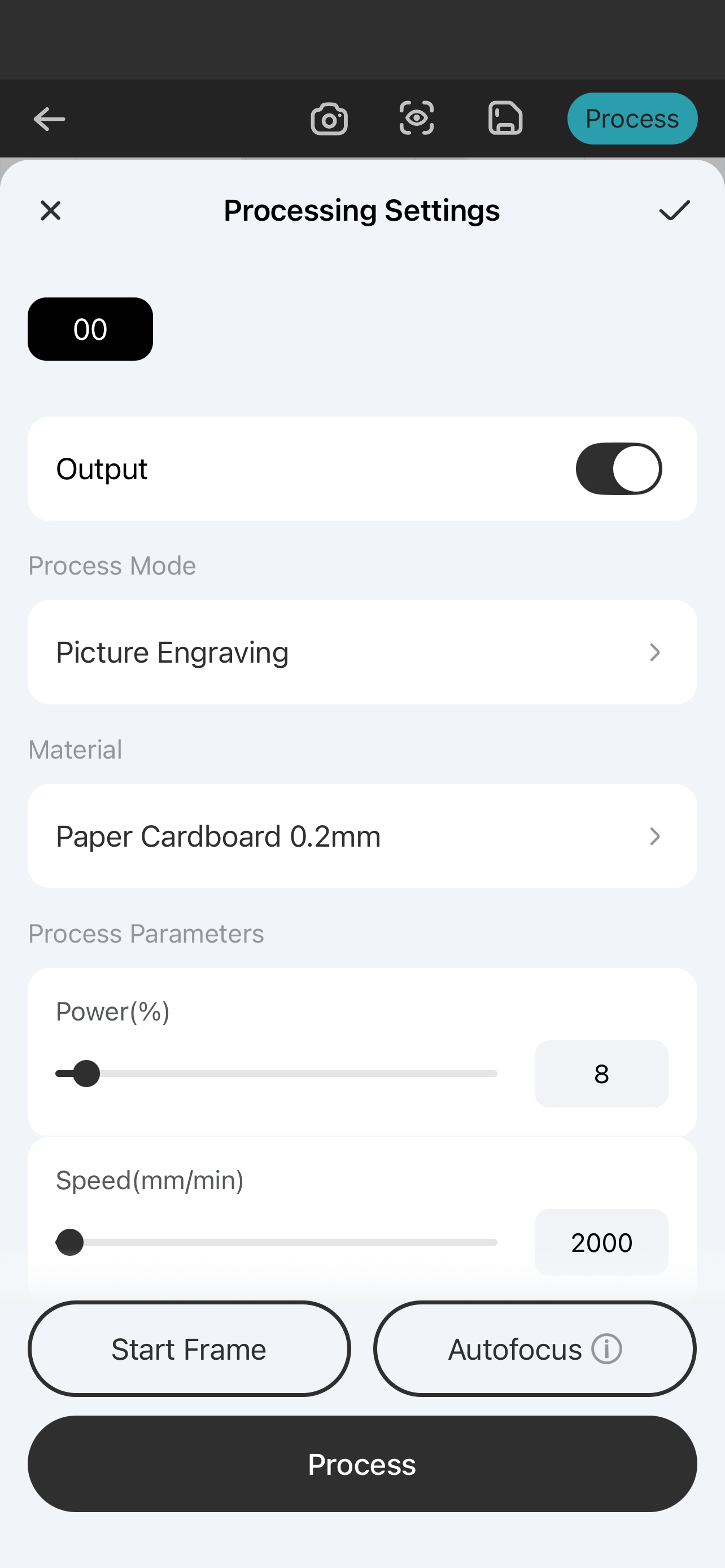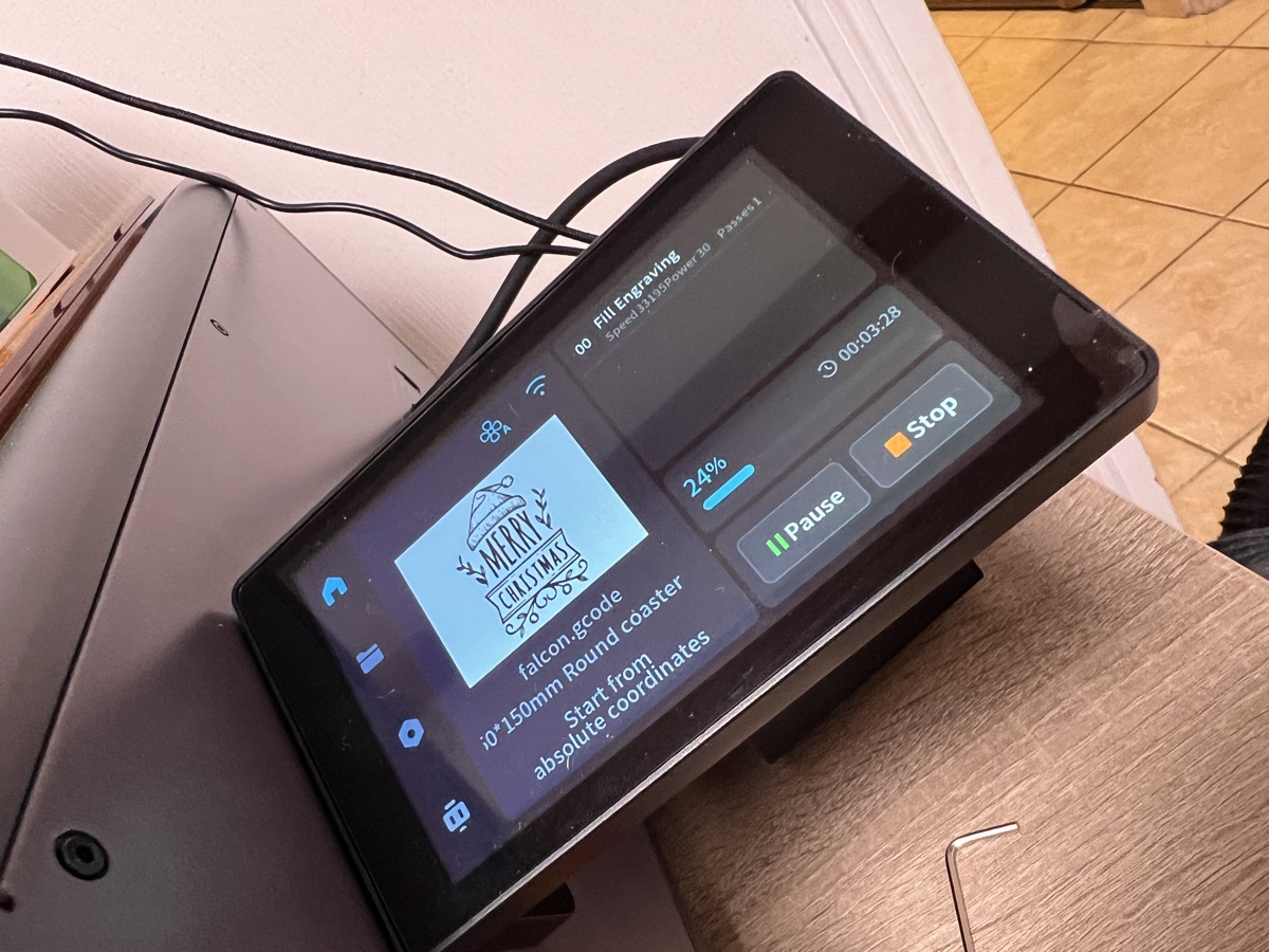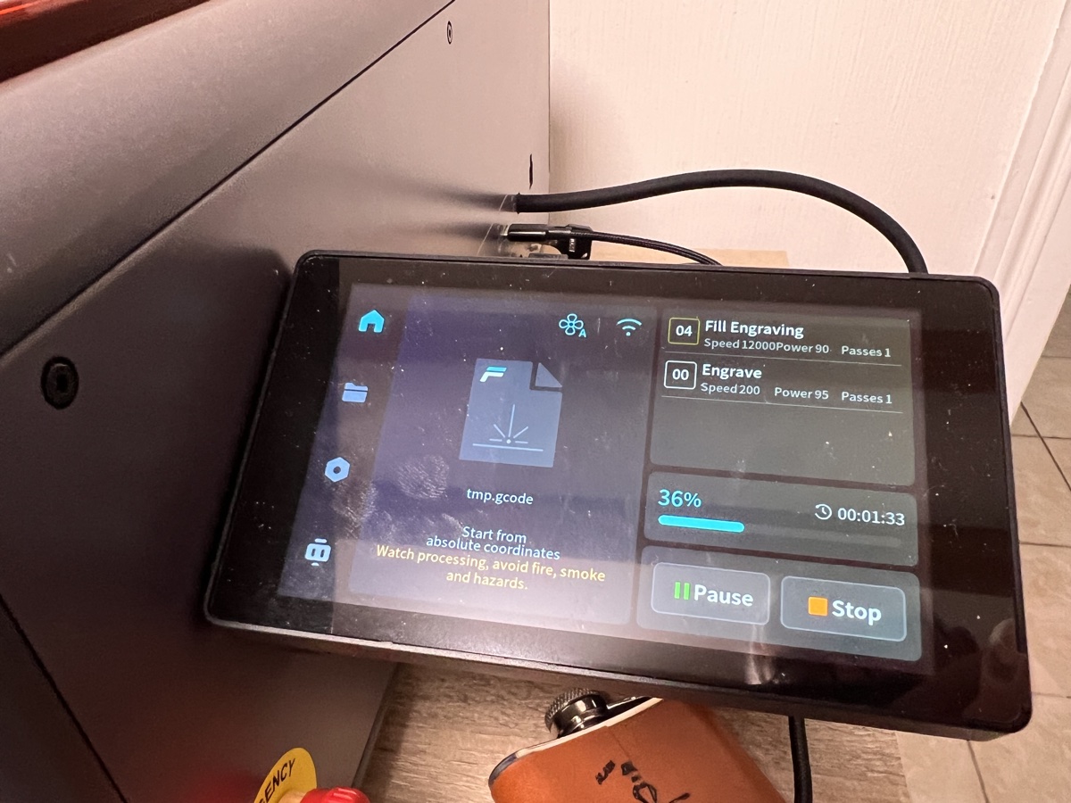 Cet écran offre surtout la possibilité d’utiliser la machine dans un mode autonome, sans ordinateur. Il faut simplement exporter ses fichiers à partir d’un ordinateur ou de l’application mobile. Il permet aussi d’ajuster les paramètres, d’activer l’autofocus ou encore de suivre la progression des gravures en direct.