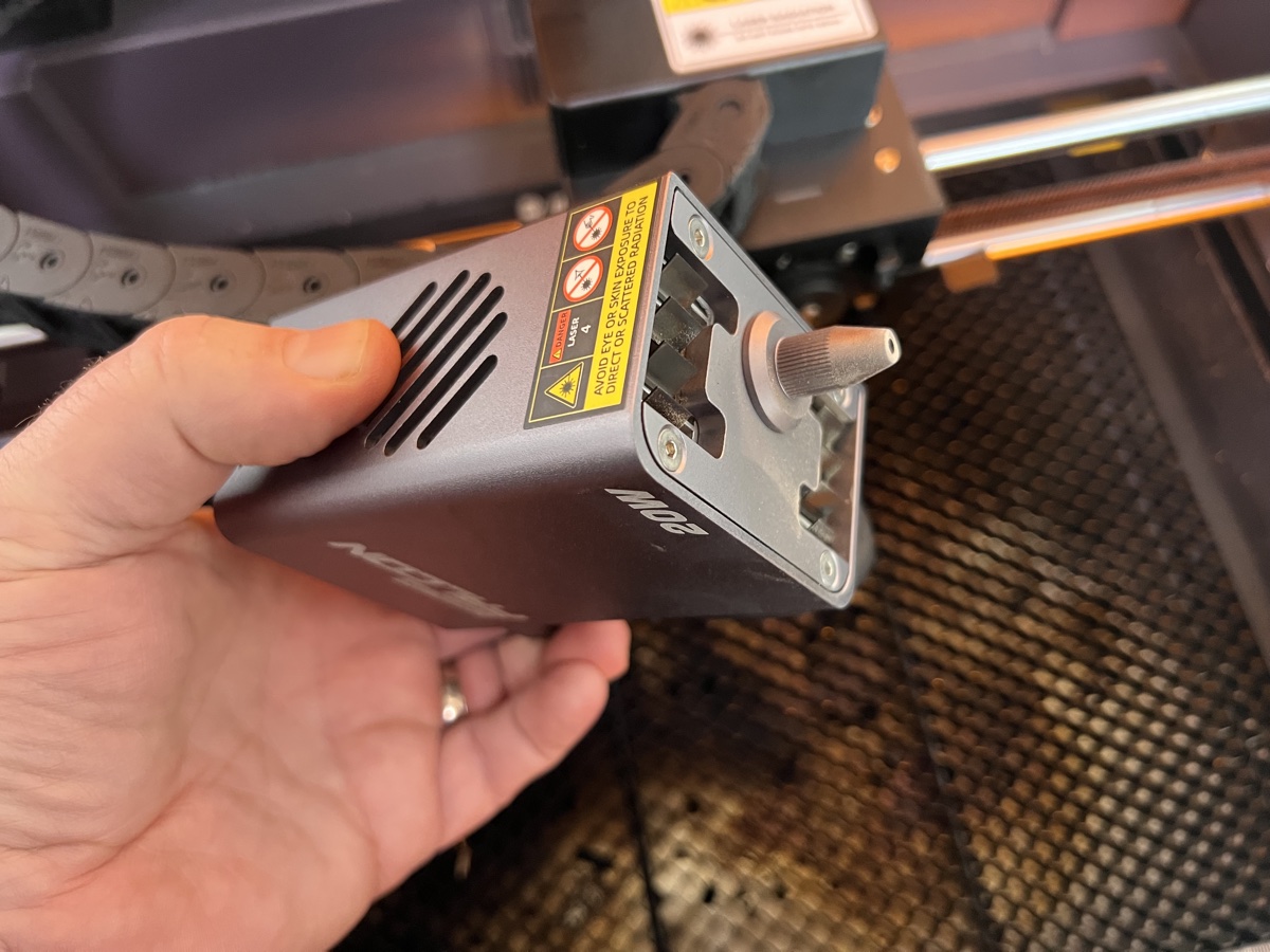 Affichant une puissance de 20 W sur la A1 Pro, elle est montée sur un axe Z motorisé. Concrètement, il n’est plus nécessaire d’ajuster manuellement la hauteur : la machine calcule automatiquement la distance focale optimale grâce à un télémètre laser rapide et précis.