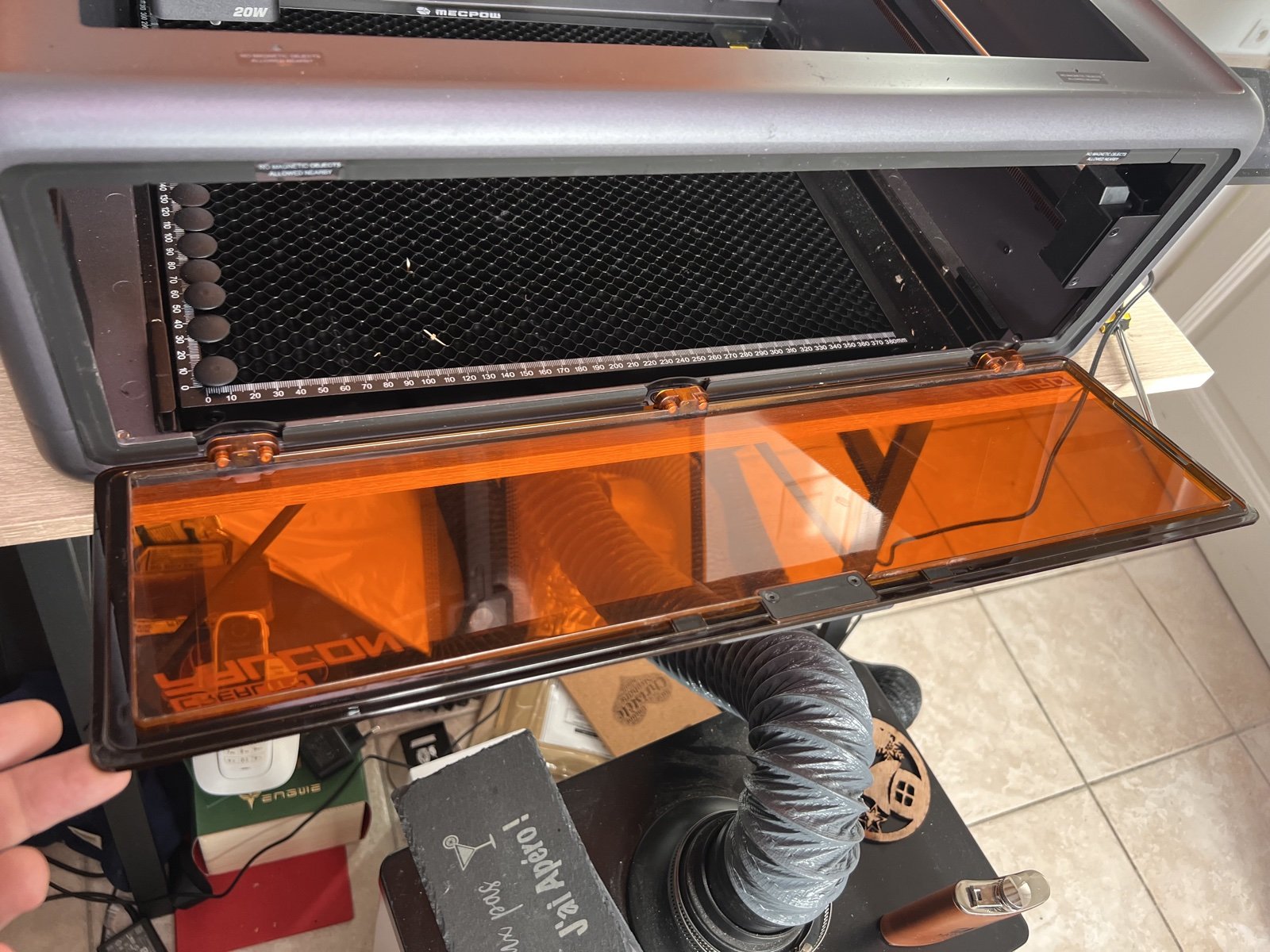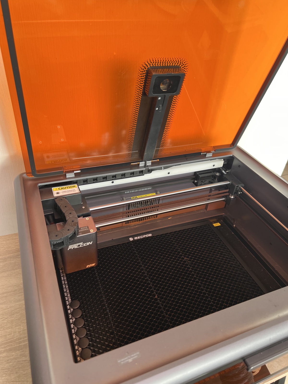 La surface utile de travail est de 268 × 358 mm : un peu plus réduite que celle d’une xTool S1 ou d’une Falcon 2 PRO, mais largement suffisante pour 90 % des projets.