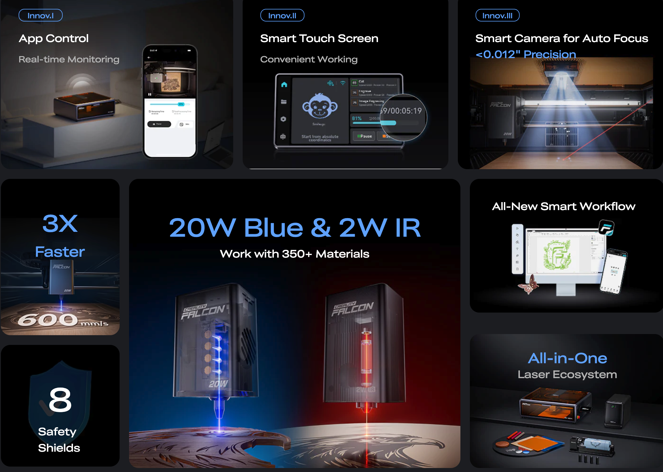La Falcon A1 Pro se distingue comme l’une des rares machines de gravure et découpe laser à bénéficier d’une certification FDA Classe 1 pour son boîtier.