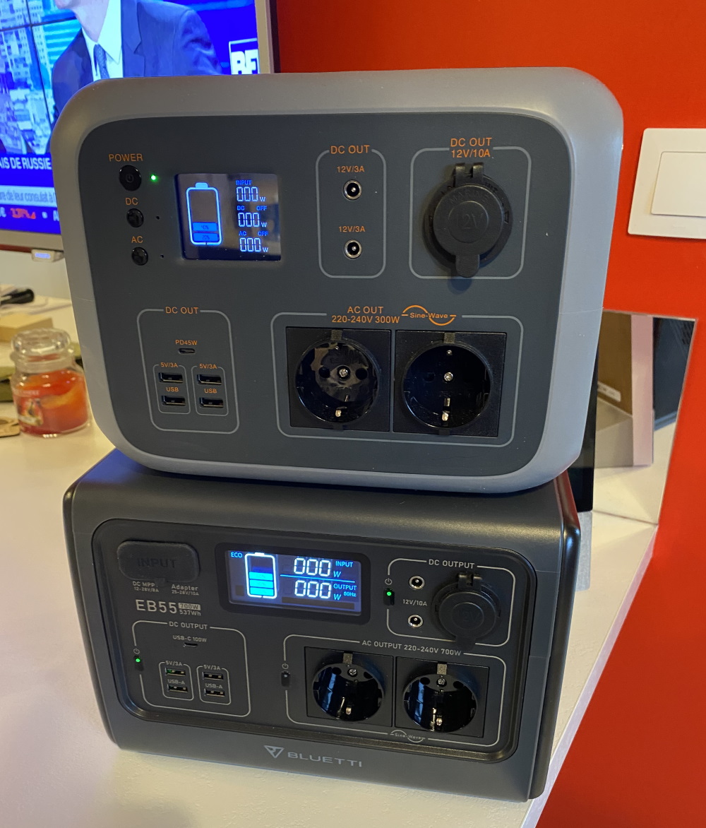 Entre les deux stations electriques qui me sont passée entre les mains, ma préférence va à la BLUETTI EB55. Ceci en raison de sa puissance de 700 watts qui permet de connecter plus de typologie d’appareil comme par exemple un micro onde mais aussi sa vitesse et polyvalence en recharge.