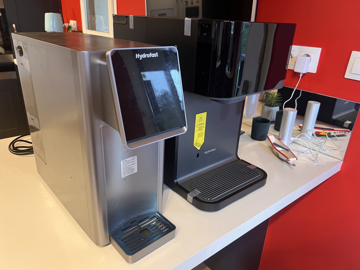 Je suis équipé depuis 6 mois d’un purificateur d’eau Hydrofast W100, de comptoir, car il n’a pas besoin d’une arrivée d’eau fixe. J’en suis extrêmement satisfait. Il me permet d’avoir de l’eau pure à température ambiante ou chaude en toutes circonstances. Et de l’eau purifiée, ce n’est pas un luxe dans une région agricole. Alors quand on m’a proposé de tester le nouveau C300 avec fonctions eau glacée et pétillante, j’ai de suite sauté sur l’occasion.