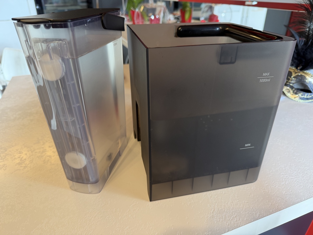 Si, comme moi, vous avez des meubles en hauteur dans votre cuisine au-dessus du plan, cela pourra être un peu plus compliqué pour vider/recharger le réservoir en eau.