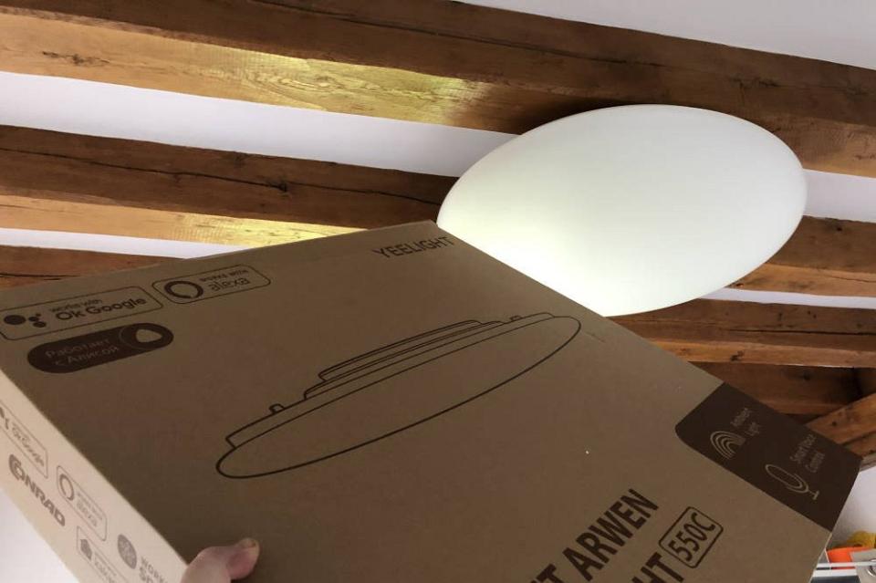 Le plafonnier Yeelight est en plastique léger.