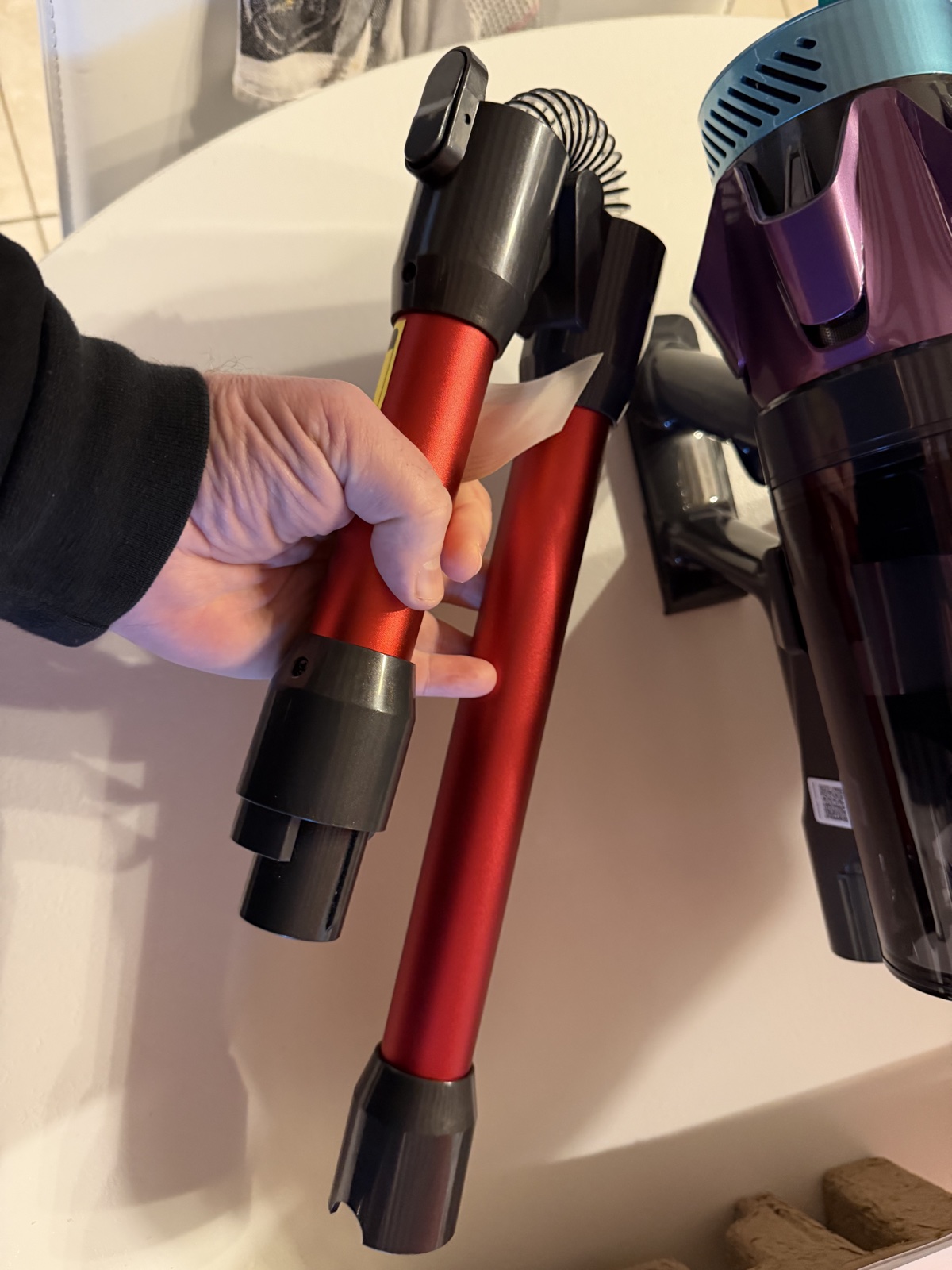 Les petits embouts se fixent facilement pour transformer l’aspirateur en modèle à main.