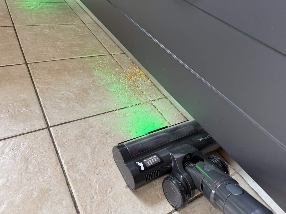 La série de LED vertes à l’avant n’est pas là seulement pour apparaitre moderne : elle permet vraiment de bien distinguer les saletés quasi invisibles pour mieux les cibler.